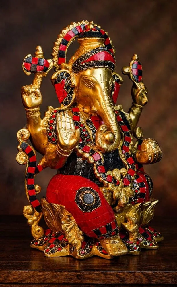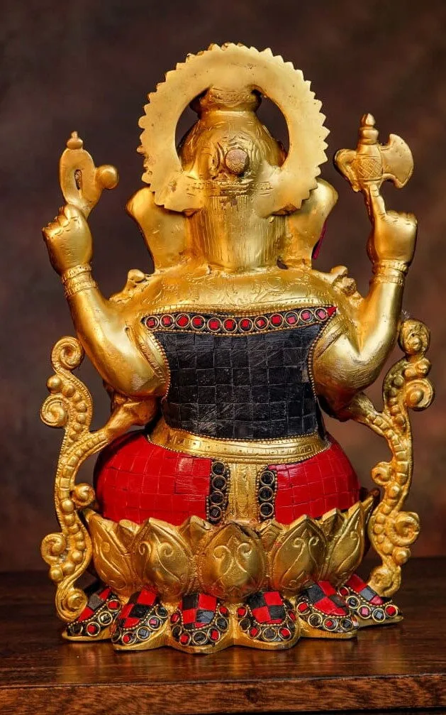 12.5 Ganesha, 7.5-8 kgs Brass, Black and Red Stone Work, 15 days lead time