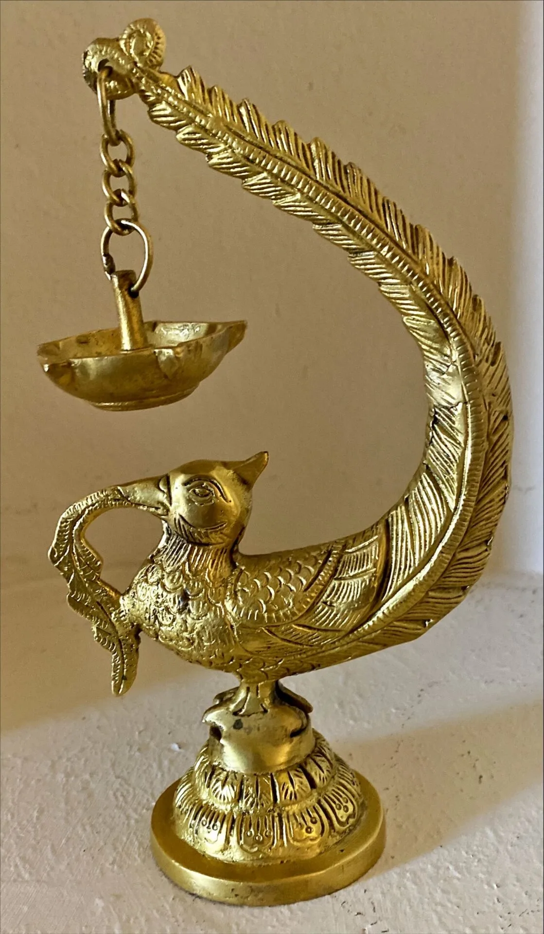 Pure Brass Peacock Diya – 8", 1 lb 10 oz (approx)