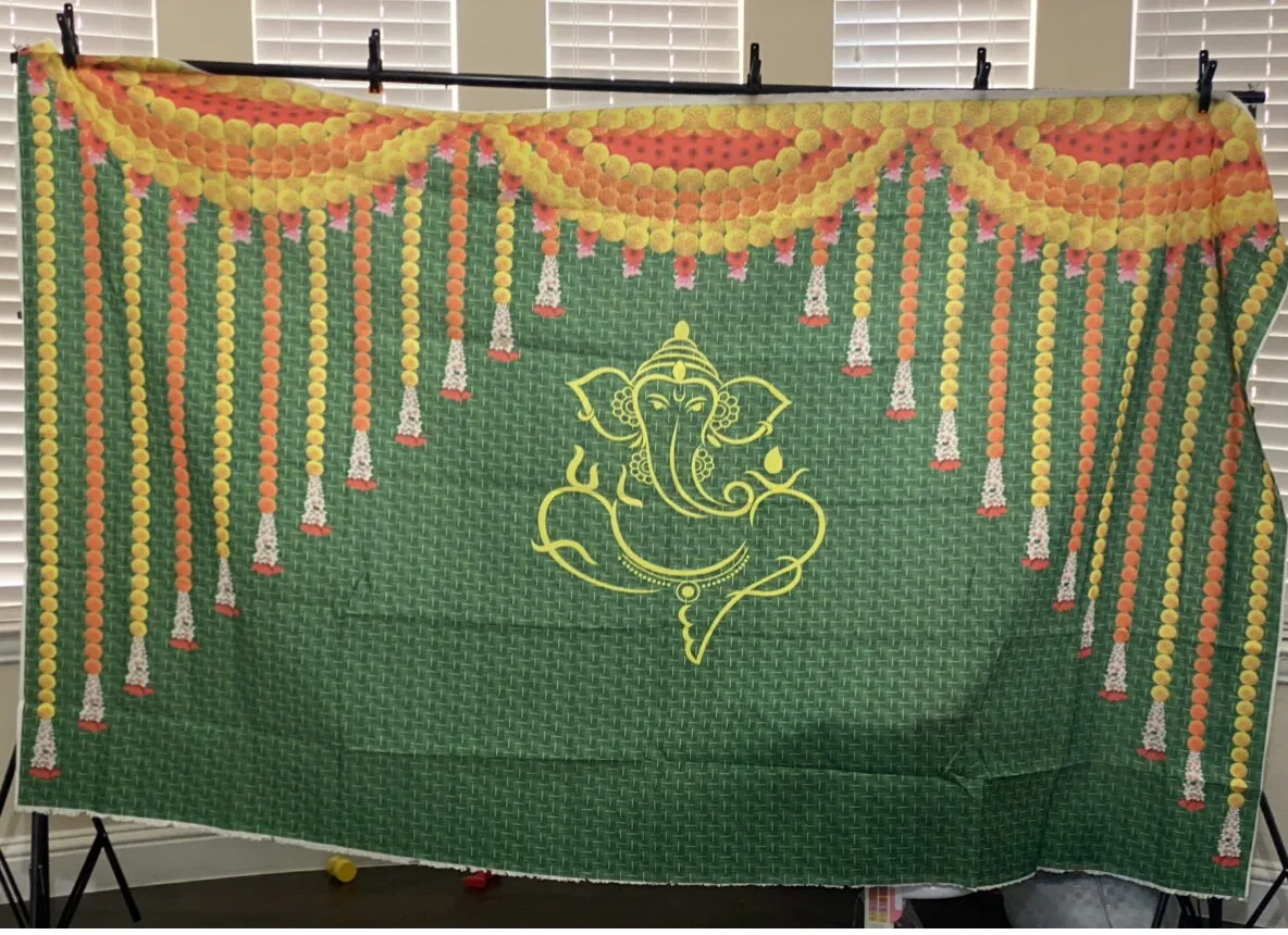 8ft x 5ft Green Background, Yellow Ganesha